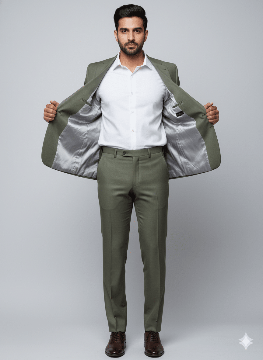 The look is completed with a 100% cotton white shirt, offering superior breathability, softness, and all-day comfort. Designed to suit different body types, this outfit is available in Slim Fit for a sharp, modern silhouette and Regular Fit for classic comfort.