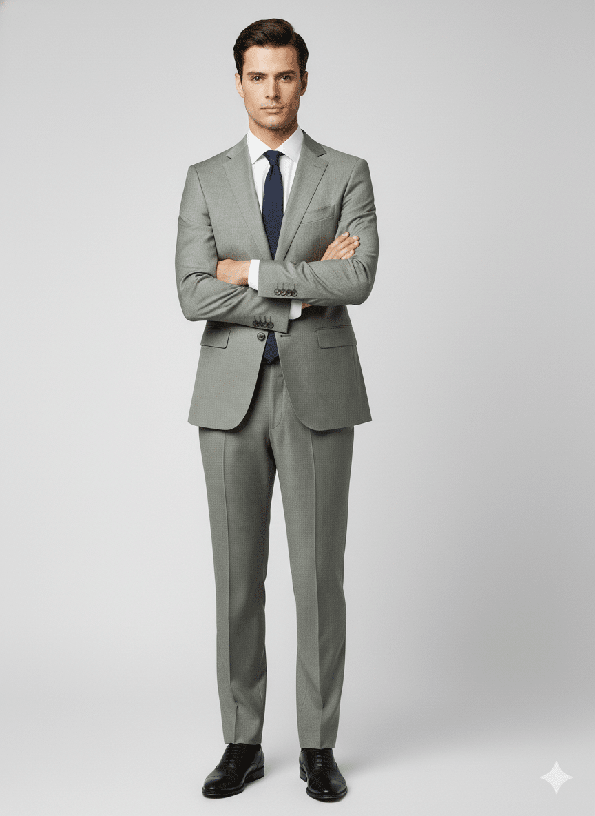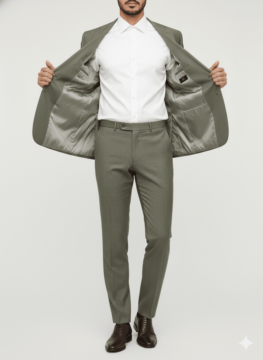 The TR fabric suit and trouser offer a smooth texture, structured drape, and excellent crease resistance, ensuring long-lasting sharpness throughout the day. The white cotton shirt adds breathability and comfort, making this set ideal for all-day formal wear.
