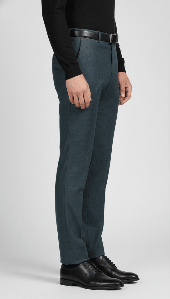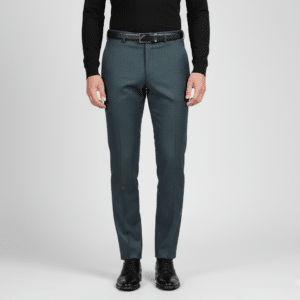The fabric showcases a rich teal-green tone with subtle blue undertones, giving it a premium, modern appeal that stands out while remaining formal. Available in both Slim Fit and Regular Fit, this trouser is designed to suit different body types and styling preferences.