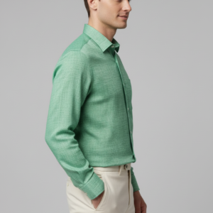Refresh your wardrobe with this mint green textured linen shirt, crafted for men who appreciate effortless style and breathable comfort. The subtle woven texture adds a refined depth to the fabric, giving the shirt a premium, modern look perfect for both everyday wear and polished semi-formal occasions.