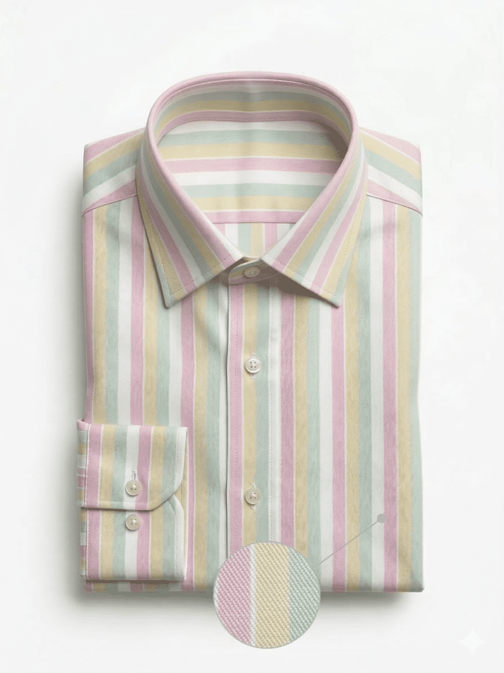 Refresh your wardrobe with this Premium Pastel Stripe Cotton Shirt, designed for men who appreciate modern elegance with subtle sophistication. Featuring a refined blend of soft pastel stripes in mint green, blush pink, sky blue, and ivory, this shirt offers a stylish yet versatile look suitable for both office wear and smart casual occasions. The vertical stripe pattern enhances the body silhouette, giving a clean, taller, and more structured appearance.