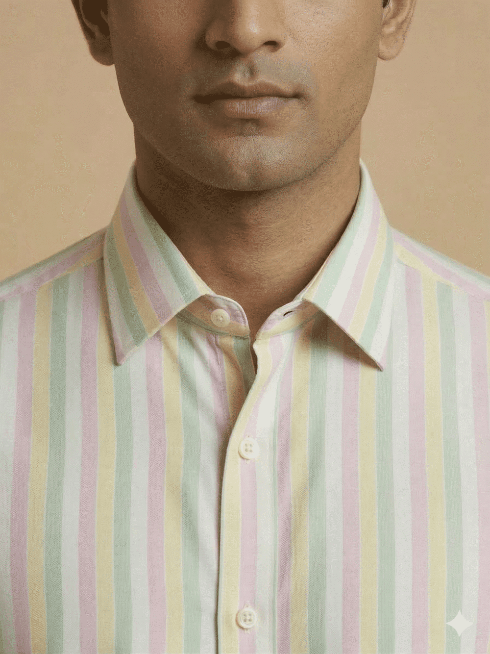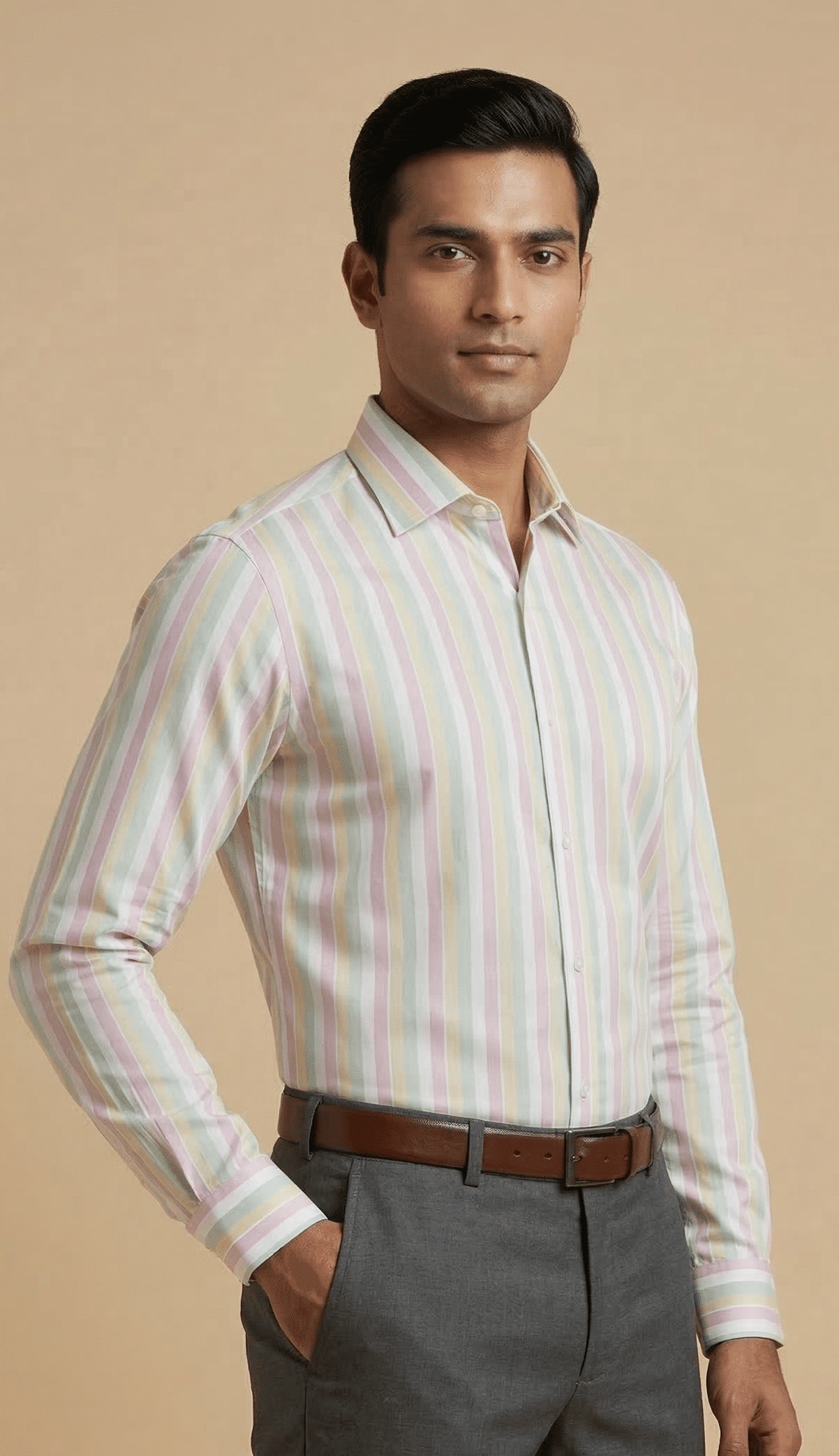 Crafted from high-quality breathable cotton fabric, the shirt ensures all-day comfort while maintaining a crisp and polished finish. The smooth texture, precisely tailored fit, and classic spread collar create a perfect balance between contemporary fashion and timeless style. Whether paired with formal trousers, chinos, or denim, this pastel striped shirt adds a sophisticated charm to any outfit.
