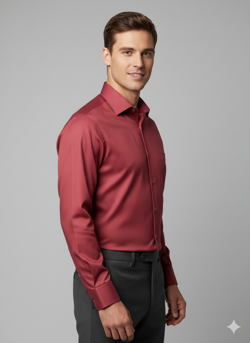 Designed with a tailored fit and a classic spread collar, it offers a clean, modern silhouette suitable for office dressing, casual outings, festive events, and business meetings. Its subtle textured finish and elegant button detailing add a sophisticated touch, making it an essential addition to every gentleman’s closet.