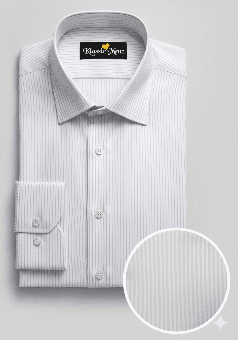Redefine refined dressing with this ultra-luxury white fine-stripe formal shirt from Klassic Menz, meticulously crafted for men who demand understated elegance and superior comfort. Made from exquisitely woven premium cotton, this shirt delivers a smooth, breathable feel with a flawless drape that enhances all-day wearability.