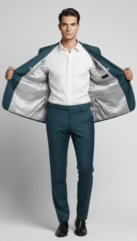 Available in Slim Fit for a modern tailored look and Regular Fit for classic comfort, this formal set is offered in rich colors such as TDeep Sea Green paired with a Pure White cotton shirt. Please note that actual product color may slightly vary due to studio lighting, photography, or screen resolution, so refer to the color name while ordering. This versatile men’s formal suit and trouser set can be worn as a complete outfit or styled separately, making it a must-have addition to every modern wardrobe.