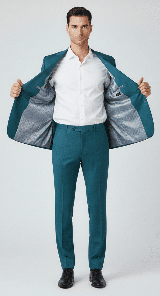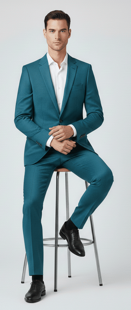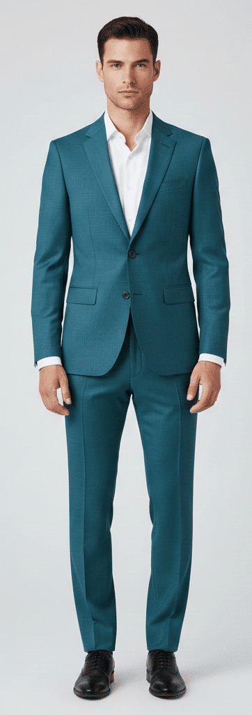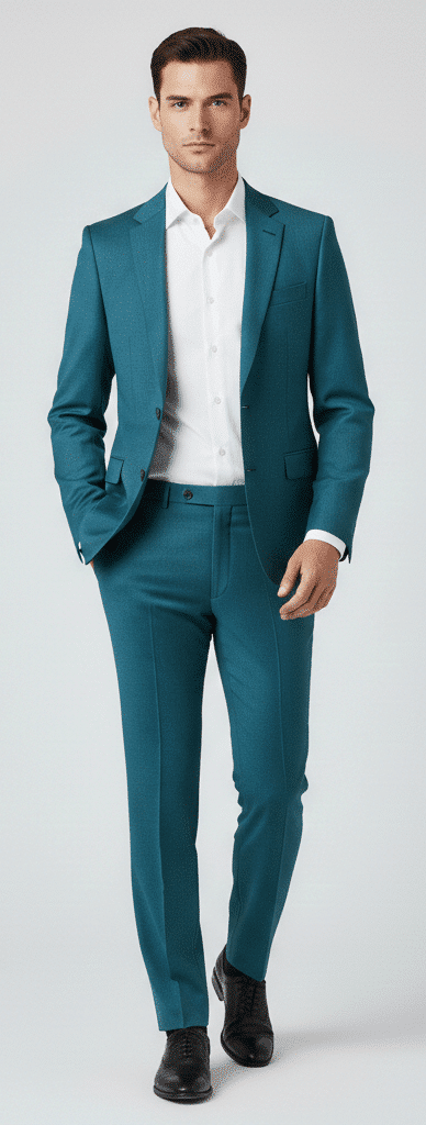 Make a bold and refined style statement with the Klassic Menz Teal Green Formal Suit Trouser paired with Premium White Cotton Shirt, designed for modern men who appreciate luxury, comfort, and confident dressing. Tailored from high-quality TR (Terry Rayon) fabric, this trouser offers a smooth finish, excellent durability, wrinkle resistance, and a sharp structured silhouette, ideal for business meetings, weddings, receptions, and premium formal occasions.